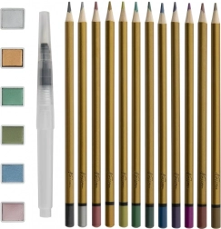 Descoperă posibilitățile creative cu acest set metalic de acuarelă cu 19 piese într-o cutie metalică rezistentă. Include 12 creioane, 6 culori acuarelă și un pensulă – ideal pentru desen, pictură și accente metalice spectaculoase.