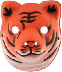 Masca de tigru în culoare portocalie cu dungi negre pronunțate, ideală pentru toți micii iubitori de animale.