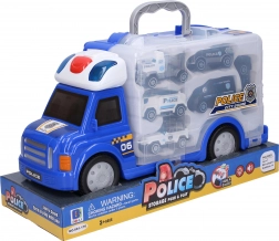 Această mare mașină de poliție măsoară 34 cm în lungime, 12,5 cm în lățime și 18,5 cm în înălțime. Este echipată cu roți libere care permit mișcarea ușoară pe suprafață. Apăsând butonul roșu situat pe cabină, se pot activa efectele luminoase și sonore care contribuie la o experiență de joc realistă.