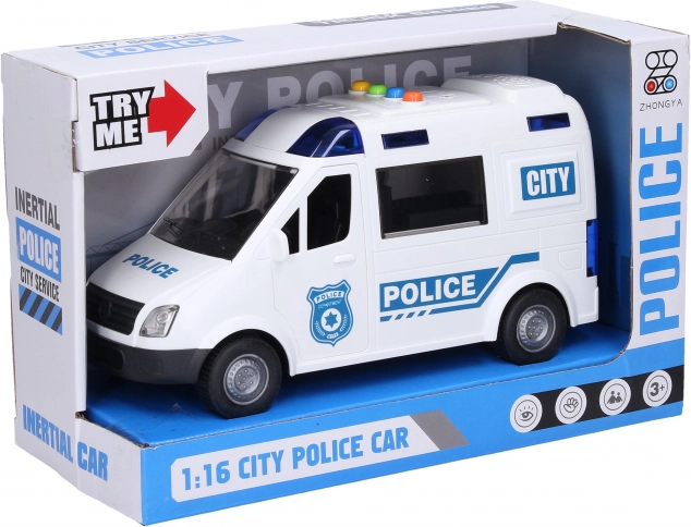 Această mașină de poliție este echipată cu efecte luminoase și sonore, care sunt activate prin butoane pe cabină. Copiii se vor bucura de un joc realist datorită ușilor din față și din spate care se deschid. Mașina este propulsată de un mecanism cu inerție, asigurând un mers lin.