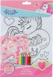 Set creativ cu tematică de unicorni conține 8 foi de colorat, 6 creioane colorate și 1 coală de autocolante. Distracție grozavă pentru copii de la 3 ani, acasă și în călătorii. Dimensiunile compacte 20 × 28,5 × 0,5 cm facilitează transportul.