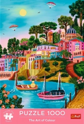 Puzzle-ul TREFL Premium Plus din seria The Art of Colour (Arta culorilor) oferă o experiență vizuală unică, cu motivul pitoreștii insule Syros din Grecia. Cartonul de înaltă calitate și tehnologia precisă de tăiere asigură că piesele se potrivesc doar acolo unde trebuie, iar datorită grosimii sporite puteți muta cu ușurință secțiunile asamblate fără riscul de a se împrăștia.