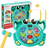 Sunt disponibile două jocuri: lovirea crabilor cu ciocănelul și pescuitul cu undița. Ambele activități sprijină dezvoltarea abilităților manuale, a motricității fine și a coordonării mână-ochi, esențiale în primii ani de viață ai copilului. Astfel, copiii își îmbunătățesc abilitățile de mișcare și precizia.