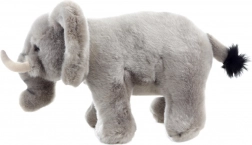 Faceți cunoștință cu acest elefant de pluș, perfect pentru camera copilului sau zona de joacă. Trăsăturile sale realiste includ urechi mari, colți și o coadă mică, conferindu-i un aspect viu care îi distrează pe copii.