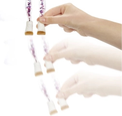 Picioarele păpușilor sunt pline de particule strălucitoare care se mișcă atunci când sunt agitate.