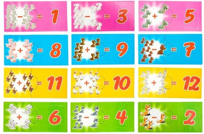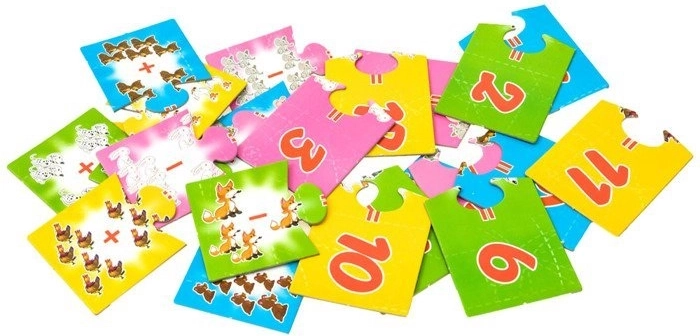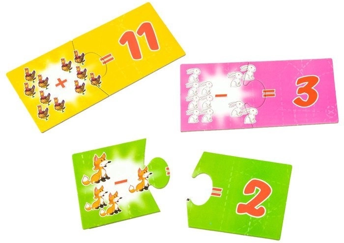 Acest set amuzant de puzzle cu animăluțe îi ajută pe copii să își însușească bazele adunării și scăderii cu ajutorul unor imagini sugestive și al numerelor. Copiii asociază exercițiile cu rezultatele, își dezvoltă gândirea logică, atenția și motricitatea fină – toate în mod natural și prin joc.