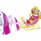 - Evi în rol de prințesă cu sanie de iarnă și cal