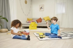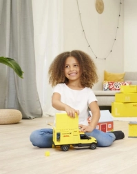 Acest set realizat cu atenție la detalii îi introduce pe copii în universul livrării coletelor. Camionul de marfă VOLVO în culorile DHL, cu elemente mobile, lumini și sunete, transformă orice joc într-o experiență autentică. Include figurină curier, bicicletă cu box, cărucior de manipulare, colete și cutie de coletărie cu panou solar pentru scenarii complete de livrare.