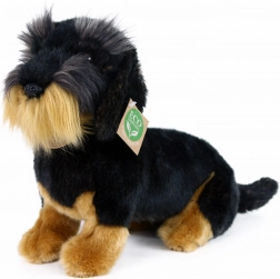 Câinele de pluș teckel sârmos cu dimensiunea de 30 cm este realizat din pluș exclusivist, de calitate foarte înaltă. Această jucărie de pluș senzațională este ideală și ca un cadou! Cățelușul de pluș face parte din colecția exclusivă de jucării de pluș RAPPA. Ce înseamnă de fapt ECO-FRIENDLY? Umplutura jucăriei de pluș este realizată din sticle PET reciclate. Acest material este complet sigur, la atingere de nedeosebit de umplutura standard și este pe deplin certificat pentru siguranța chiar și a celor mai mici. Am decis să urmăm o cale verde, cât mai puțin împovărătoare pentru mediul înconjurător – calea ECO-FRIENDLY.
