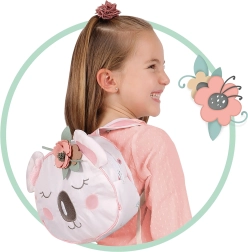Include rucsăcel decorativ, saltea moale și husă pentru landou. Motiv floral delicat și o koala adormită care va bucura orice copil.