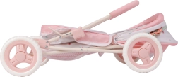 Acest cărucior pentru păpuși, cu un design floral delicat, combină alb și roz somon și este decorat cu un ursuleț koala adormit cu floare. Datorită mânerului jos este potrivit și pentru copiii mai mici, iar datorită construcției ușoare se manevrează excelent atât în casă, cât și afară.