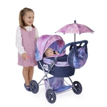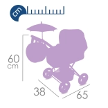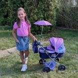 Accesoriile practice stimulează imaginația în timpul jocului: umbrelă pentru protecția păpușii, saltea pentru confort și coș inferior pentru toate lucrurile necesare. Execuția atentă și combinația de metal, plastic și textil asigură rezistență și durabilitate.
