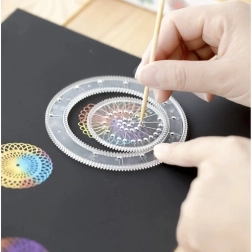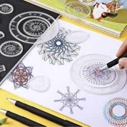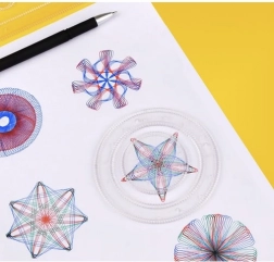 Setul de spirograf MAELEO îmbină distracția, arta și educația. Roți dințate, inele și șabloane geometrice de dimensiuni diferite permit desenarea hipotrocoidelor și epitrocoidelor – curbe repetitive și mandale fascinante. Elementele transparente clarifică poziția pixului, astfel încât chiar și începătorii obțin modele precise și armonioase.