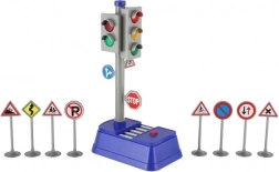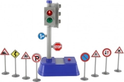 Pe lângă semafor, setul include și câteva semne de circulație care îi învață pe copii să recunoască și să înțeleagă situațiile rutiere.