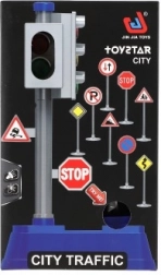 Acest set oferă o învățare distractivă despre importanțele rutiere. Semaforul pentru copii cu efecte luminoase și sonore îmbunătățește experiența de joacă și îi învață să recunoască și să înțeleagă semnificația diferitelor semne de circulație. Prin materialul din plastic, jucăria este sigură pentru copiii de la 3 ani.