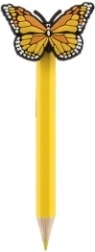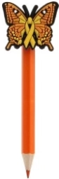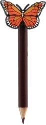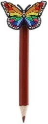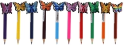 Fiecare creion este decorat cu un fluturaș colorat, care adaugă creioanelor un aspect vesel și funcțional.