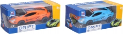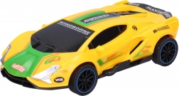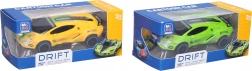Mașinuță de curse pentru drift cu mecanism pe inerție, dimensiuni 15,5 × 8 × 4 cm. Doar împinge-o înainte, iar datorită rotiței montate perpendicular în mijlocul șasiului, derapează singură. Disponibilă în 4 culori – albastru, verde, portocaliu, galben; distracție fără baterii.