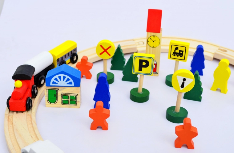 Această cale ferată clasică din lemn dezvoltă creativitatea, motricitatea fină și imaginația. Piesele se pot combina și reconfigura cu ușurință, astfel încât copiii pot descoperi mereu trasee și povești noi. Datorită cuplării magnetice a vagoanelor, manipularea trenulețului este simplă și sigură.