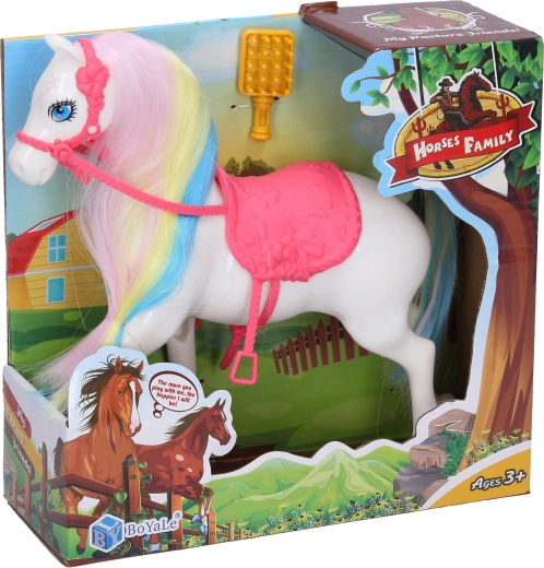 Calul este disponibil în două variante de culoare – alb elegant și roz delicat. Jocul susține jocul de rol, îngrijirea și dezvoltă motricitatea fină, imaginația și relația cu animalele.