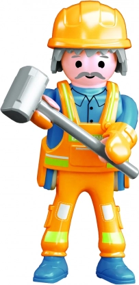 Figurină muncitor pentru set de construcție de dimensiunea 7 cm este ideală pentru toți micii constructori. Pachetul conține diverse variante și accesorii, cum ar fi unelte și ghid de asamblare.