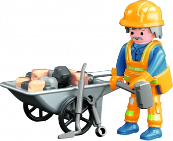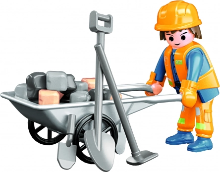 - Include figurina muncitorului, roaba, încărcătură și unelte