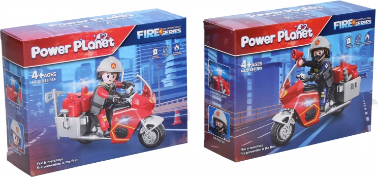 Set de construcție pompier pe motocicletă cu far intermitent. Cadoul perfect pentru fanii pompierilor și copii.