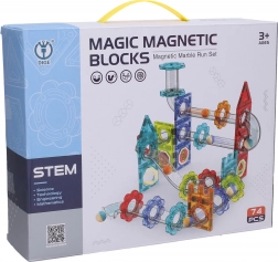 Pistă magnetică cu bile cu 74 de piese este o alegere excelentă pentru copii creativi. Acest set de construcție conține tot ce aveți nevoie pentru a construi piste unice pentru bile.