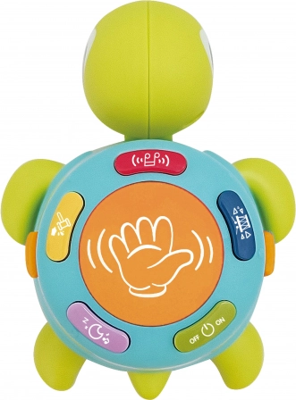 Descoperă toba jucăușă în formă de țestoasă, care îi atrage pe cei mici prin designul vesel și efectele interactive. Datorită funcțiilor luminoase și sonore, îi motivează la joacă, susține simțul ritmic și dezvoltă motricitatea fină. Practicul buton ON/OFF permite o utilizare ușoară, iar țestoasa este echipată cu roți libere pentru o mișcare lină pe podea.