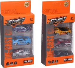 Setul de trei mașinuțe metalice cu lungimea de aproximativ 7,5 cm îi va încânta pe micii iubitori de automobile. Datorită construcției metalice robuste și roților cu rulare liberă, oferă multă distracție acasă și în călătorii. Dimensiunile compacte, 2 variante de design și finisarea de calitate fac din acest set un cadou grozav.
