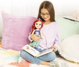 Prințesa Ariel din îndrăgita poveste Mica Sirenă vine ca o păpușă de 40 cm care va fermeca orice mică iubitoare de basme. Elementele sclipitoare ale rochiei și coroana subliniază aspectul ei regal, în timp ce părul lung, roșu intens, invită la pieptănat și styling.