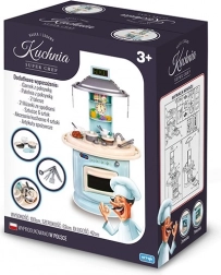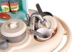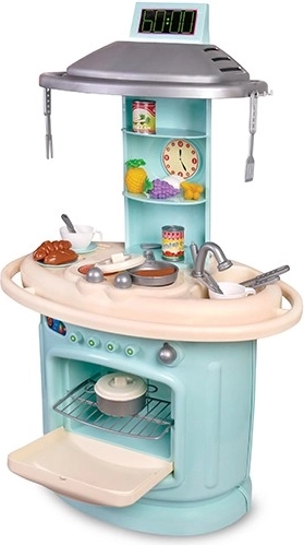 Sunt incluse și ustensile de bucătărie practice, farfurii, căni și un set de alimente și fructe din plastic, care le permit copiilor să pregătească un „meniu” pentru întreaga familie. Construcția durabilă este ideală pentru joaca de zi cu zi.