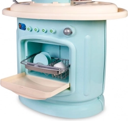 Această bucătărie modernă pentru copii, în culori pastel, oferă tot ce au nevoie micii bucătari pentru gătit distractiv. Datorită detaliilor precum controale rotative, cuptor cu ușiță și chiuvetă, bucătăria susține dezvoltarea motricității fine și a imaginației.