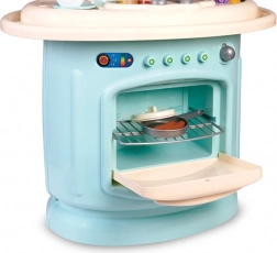 Cuptorul cu ușiță și grătar imită coacerea reală. Copiii pot introduce tăvi și servi bunătățile gata pregătite.