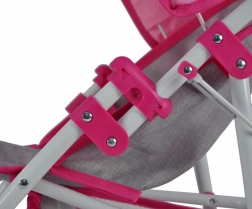 Natalie este un cărucior pentru păpuși cu lungimea de până la 50 cm. Este echipat cu capotină rabatabilă, curele și roți din față pivotante. În plus, are un coș pentru accesoriile păpușii necesare în timpul plimbării, inclusiv biberoane cu lapte, haine și scutece.
