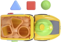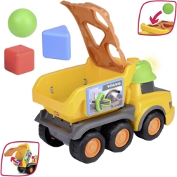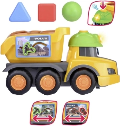 Camionul galben Volvo cu design vesel și cuburi colorate pentru sortatorul de forme este ideal pentru dezvoltarea abilităților motorii.