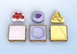 Cutia cu inserturi colorate permite sortarea fructelor și legumelor după culori și forme, sprijinind dezvoltarea vizuală și cognitivă.