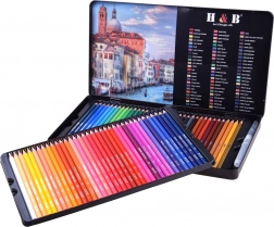 Acest set deosebit conține 72 de culori diferite într-o cutie metalică practică. Creioanele au vârf fin, asigurând o distribuție uniformă a culorilor. Sunt perfecte pentru desen, colorat sau pentru a crea efecte de acuarelă cu ajutorul unei pensule cu apă. Formula moale a acestor creioane face desenul distractiv și simplu!