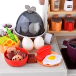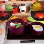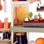Hota interactivă cu LED și melodii, fierbătorul de ouă cu lumină și sunet, precum și tăblița cu cretă pentru scrierea meniului dezvoltă imaginația și motricitatea fină. Bucătăria oferă suficient spațiu de depozitare – rafturi, sertare, cârlige – și un set bogat de vase, alimente și condimente pentru jocuri de rol nesfârșite.