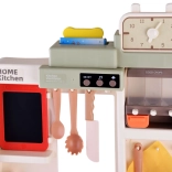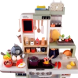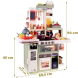 Marea bucătărie pentru copii, bogat echipată, le oferă micilor bucătari distracție realistă. Include efecte de lumină și sunet, abur sigur în timpul „gătitului”, robinet funcțional cu apă într-un circuit închis și o mulțime de accesorii de bucătărie (88 piese). De asemenea, are hotă cu LED și melodii, aragaz, cuptor, frigider, mașină de spălat vase și tăbliță cu cretă pentru meniu.