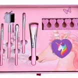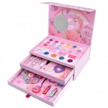 Oferiți fiicei voastre șansa de a-și exprima creativitatea cu această valiză de machiaj cu unicorn. Conține tot ce este necesar pentru a crea un machiaj frumos și în același timp păstrează cosmeticele mamei în siguranță.