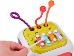 Joaca cu cubul dezvoltă natural motricitatea fină, îi învață pe copii să recunoască culorile și formele și susține gândirea logică. Datorită pieselor zornăitoare și texturilor variate, oferă o stimulare senzorială bogată și minute îndelungate de joacă concentrată.