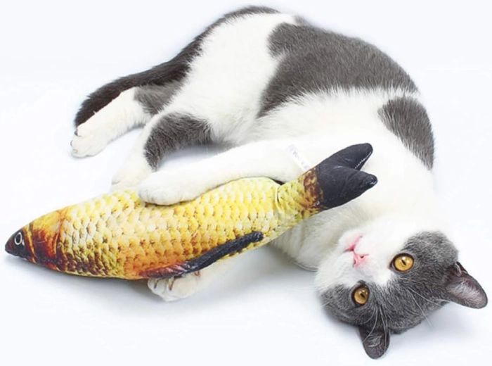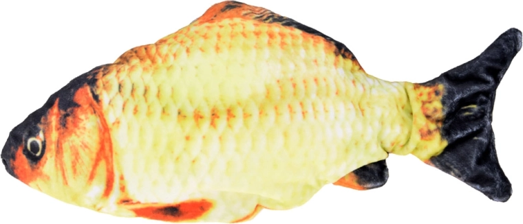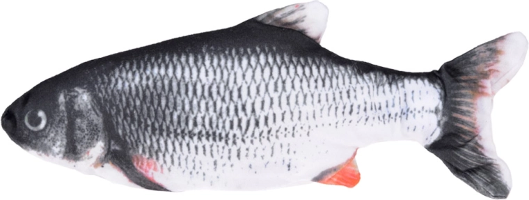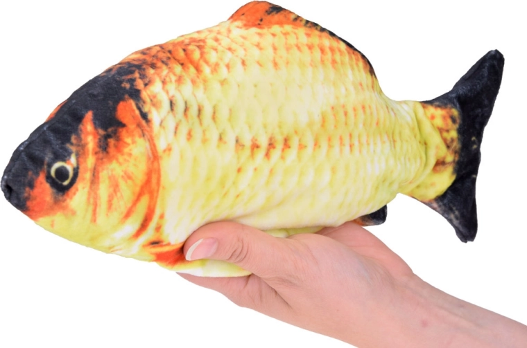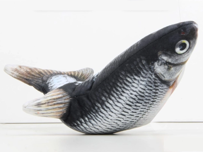 Acest pește de pluș interactiv, după o bătaie ușoară pe burtică, se pune în mișcare și imită fidel mișcarea unui pește real. Imprimeul realist al solzilor și înotătoarelor, materialul plăcut și manevrarea ușoară îl fac o jucărie ideală pentru copii și un accesoriu distractiv excelent pentru adulți.