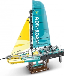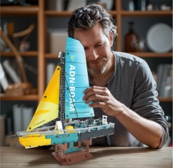Acest set tehnic bine gândit oferă o experiență autentică atât la construirea, cât și la expunerea modelului. Coca detaliată, velele colorate cu parâme și vinciurile funcționale creează aspectul fidel al unui iaht de curse pe care îl poți chiar controla – de la cârmă și direcție până la reglarea velelor.