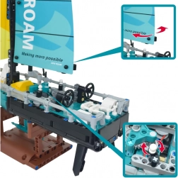 Controlează cârma și direcția, folosește vinciul și ajustează velele. Elementele mecanice aduc interactivitate atât în faza de construcție, cât și în cea de joacă.