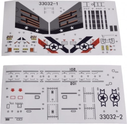 Foaile cu decalii și rachetele detașabile desăvârșesc aspectul final al modelului. Adăugați marcaje și însemne care conferă aeronavei un caracter realist, de colecție.