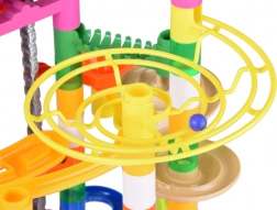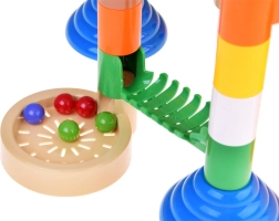Construiește structuri variate din tuburi, curbe, spirale și suporturi și privește cum bilele gonesc pe rampe. Datorită liftului electric, bilele se întorc automat la start, iar distracția continuă fără întrerupere. Piesele din plastic rezistent, în culori vii, sunt concepute pentru îmbinare ușoară și o construcție stabilă.