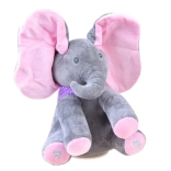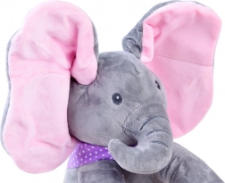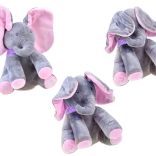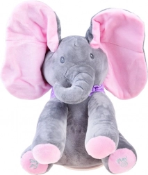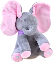 Acest elefant de pluș este jucăria ideală pentru copiii care iubesc muzica și distracția interactivă. La apăsarea lăbuței drepte se aude „Do Your Ears Hang Low”, elefantul cântă și își mișcă urechiușele. Lăbuța stângă pornește „Peek‑A‑Boo, where are you?!” și elefănțelul invită la jocul de-a v-ați ascunselea.