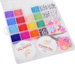 Acest set DIY universal conține o paletă largă de mărgele colorate și accesorii într-un organizator transparent cu compartimente. Copiii pot proiecta și asambla bijuterii originale pentru ei și cei dragi – de la brățări cu litere până la coliere jucăușe cu inimioare și floricele. Organizatorul ajută la păstrarea ordinii, iar lucrul devine astfel curat și distractiv.