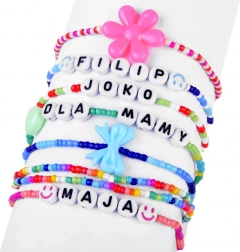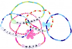 Creați brățări și coliere cu nume, inițiale sau mesaje datorită mărgelelor cu litere și accesoriilor colorate.