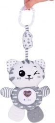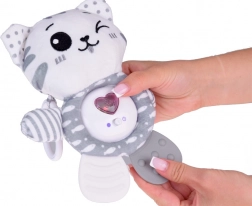 Adorabilul pisoi din pluș pentru cei mai mici combină trei funcții: melodii interactive, un ușor zornăit și foșnet și un inel moale pentru dentiție, care ameliorează disconfortul la erupția dinților. Designul plăcut gri‑alb, materialul foarte moale și agațătoarea practică îl fac partenerul ideal pentru pătuț, cărucior și scaun auto.
